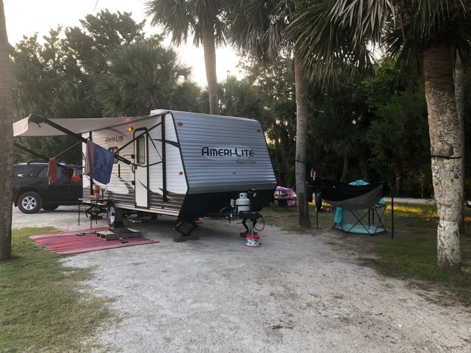 Don’t get me wrong. The campground and beach were beautiful. We even were treated to an awe-inspiring rainbow, gorgeous sunrises and tiny sea turtle hatchlings being rescued from their nests.