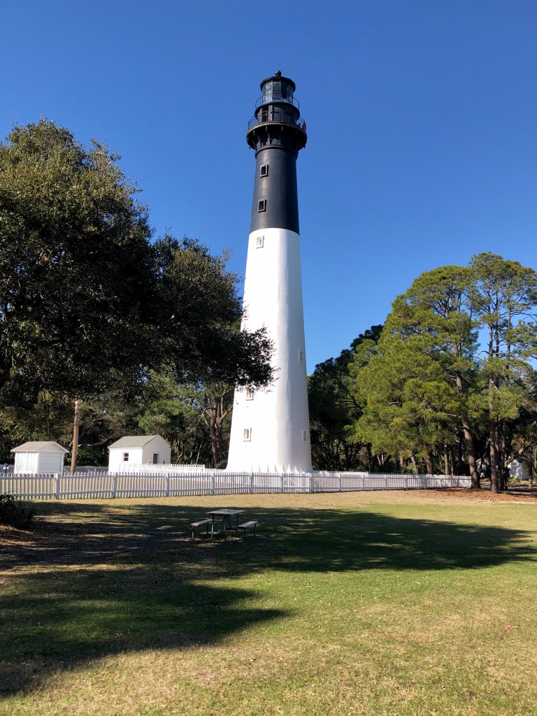 When we checked in we’d been told we could walk down to the lighthouse at low tide, so we decided to give it a try. It was a beautiful walk, but unfortunately, we discovered the lighthouse actually wasn’t accessible from the beach due to a beach renourishment project that began in early February. We did drive down to the lighthouse the next morning, but since kids have to be 48” inches tall to climb to the top, we decided to admire it from the ground.
