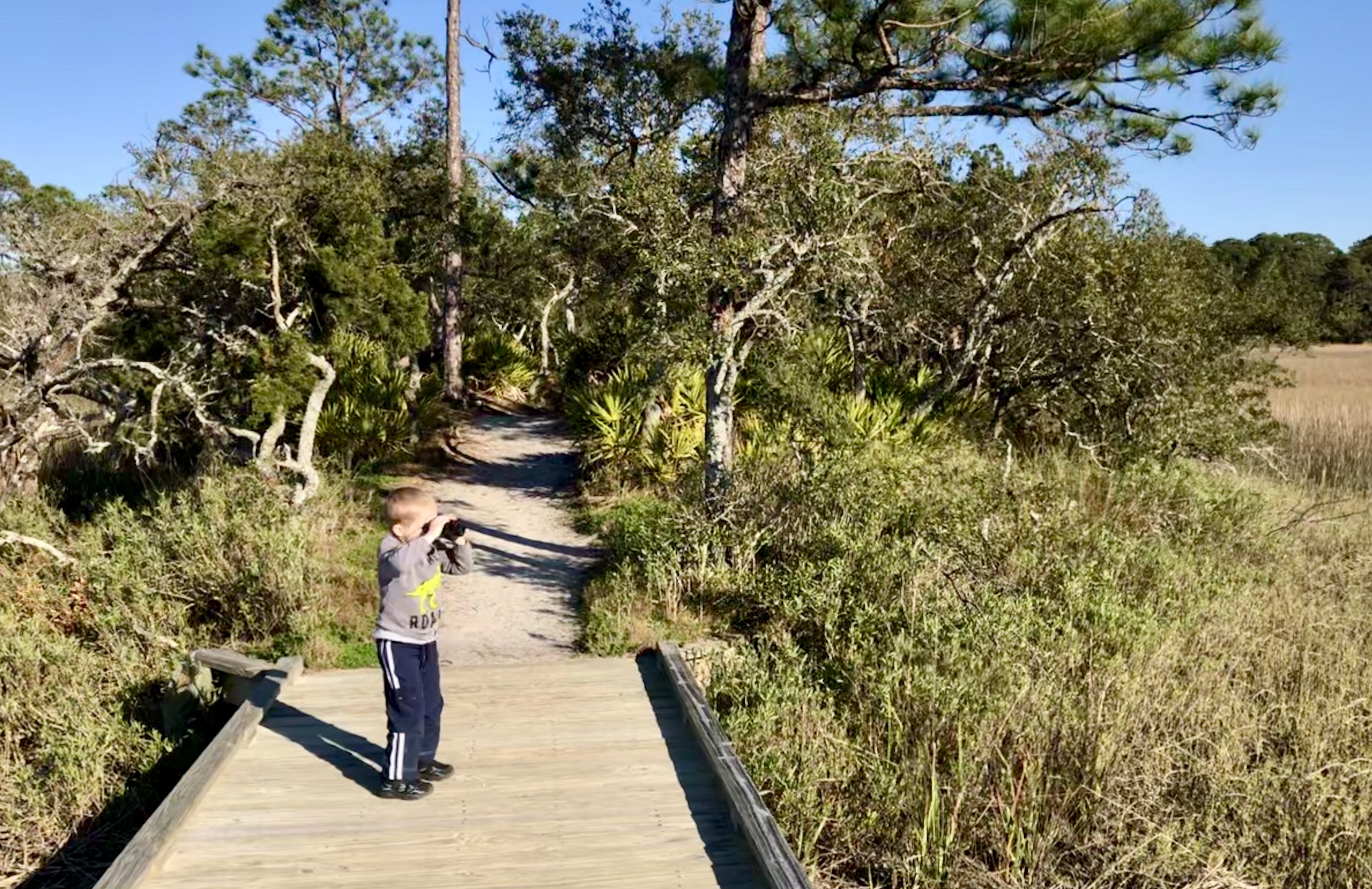 In addition to the lighthouse, we made stops at the Visitor Center, the Nature Center, the Marsh Boardwalk, and the Campground Store. The Visitor Center has a few alligators living in the pond out front, one of which we were able to see sunning herself on the bank. Everett also really enjoyed seeing the local animals who called the Nature Center home. The boardwalk was an easy walk, but if you have spirited kids, beware that there aren’t any rails on the walkways over the marsh. The Campground Store was well stocked and had a lot of great gifts and keepsakes. We made sure to pick out an ornament for our collection and a few gifts for family members.