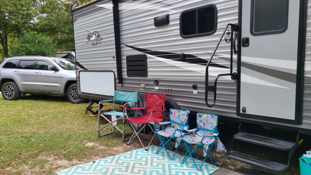 The rest of the weekend was much less traumatic. We’re lucky to have a campground like River Bottom as our “local” campground. It’s a smaller park, with large lots, full hook-up, fishing ponds, and lots of fun activities for the kids. It’s also close to Columbia, if you’re in town for a football game or want to visit any other attractions. They also have decent WIFI and good cell service, if you want to work or do virtual school from your site. Pricing also is affordable at $38-45 per night, depending on your dates and site selection.