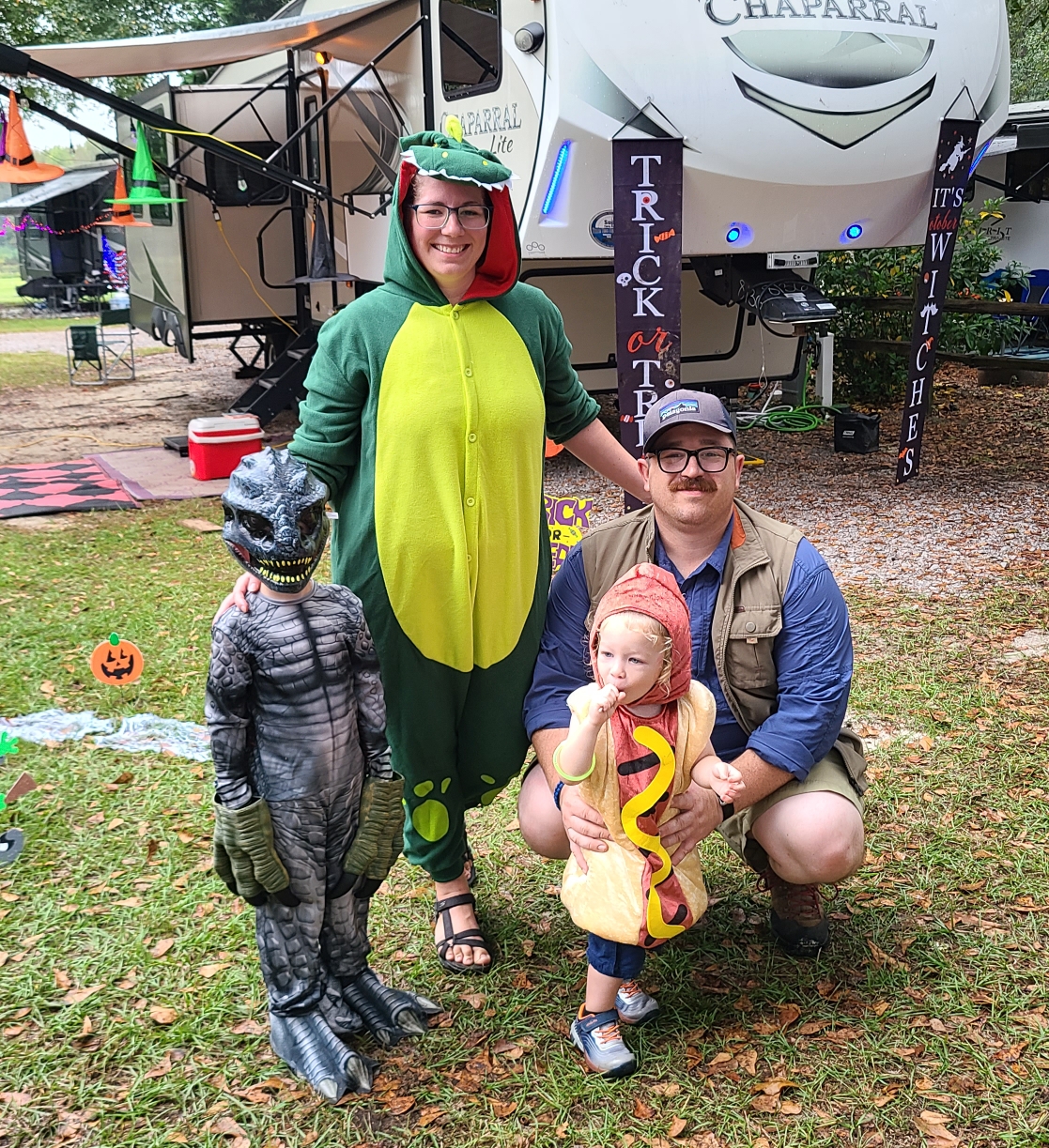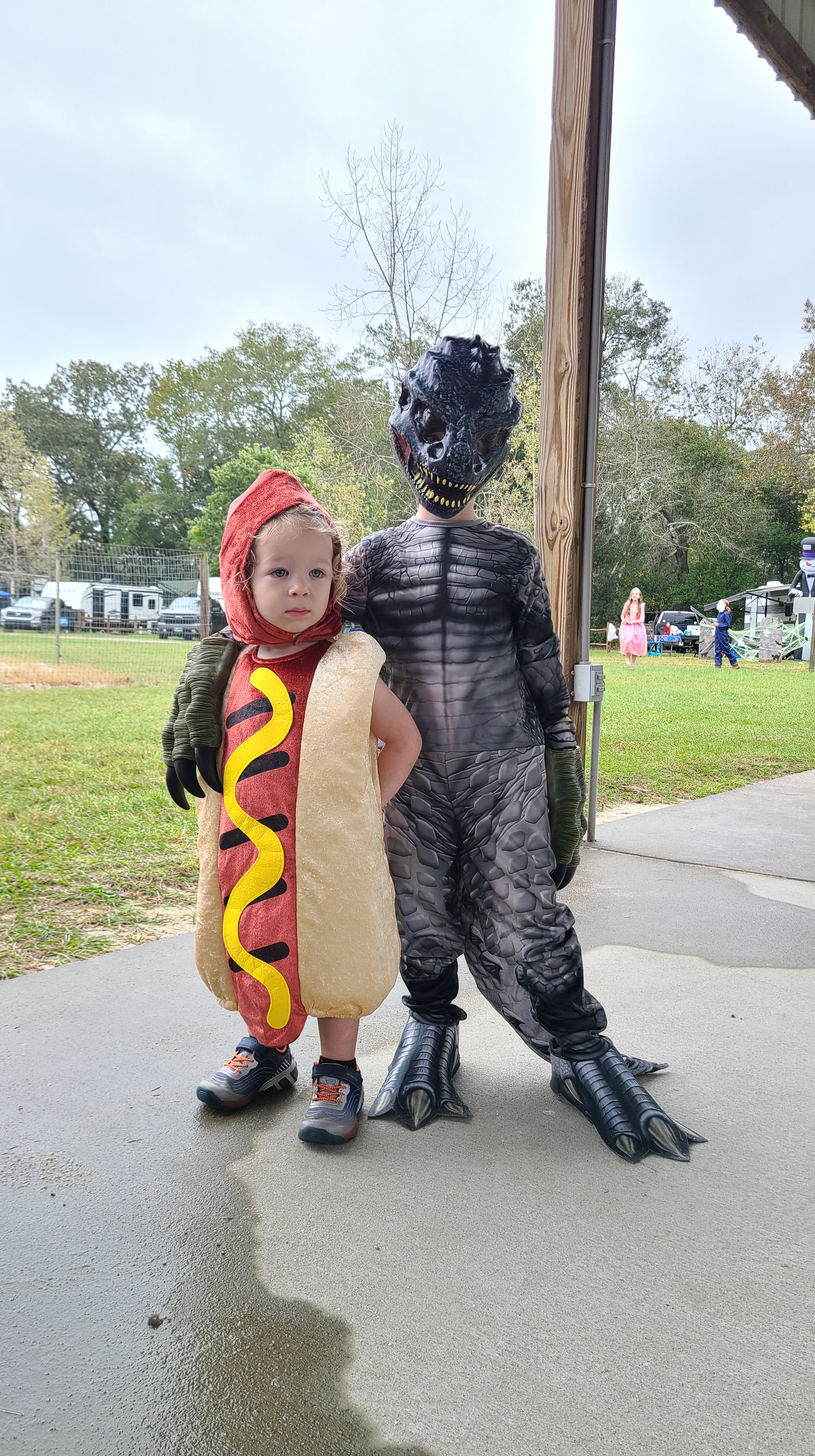 We had snagged a spot for one of River Bottom’s popular Halloween weekends, which run throughout the month of October, and the schedule of activities didn’t disappoint. The boys particularly enjoy the costume contest and the trick-or-treating. This year, our oldest assigned our costumes based on the Jurassic World Lego movie. So, he was the Indominus Rex. I was a raptor. Steven was Owen Grady, and little Jase was a hot dog. Unfortunately, we were robbed in the costume contest again this year. We’re coming for that prize next year!