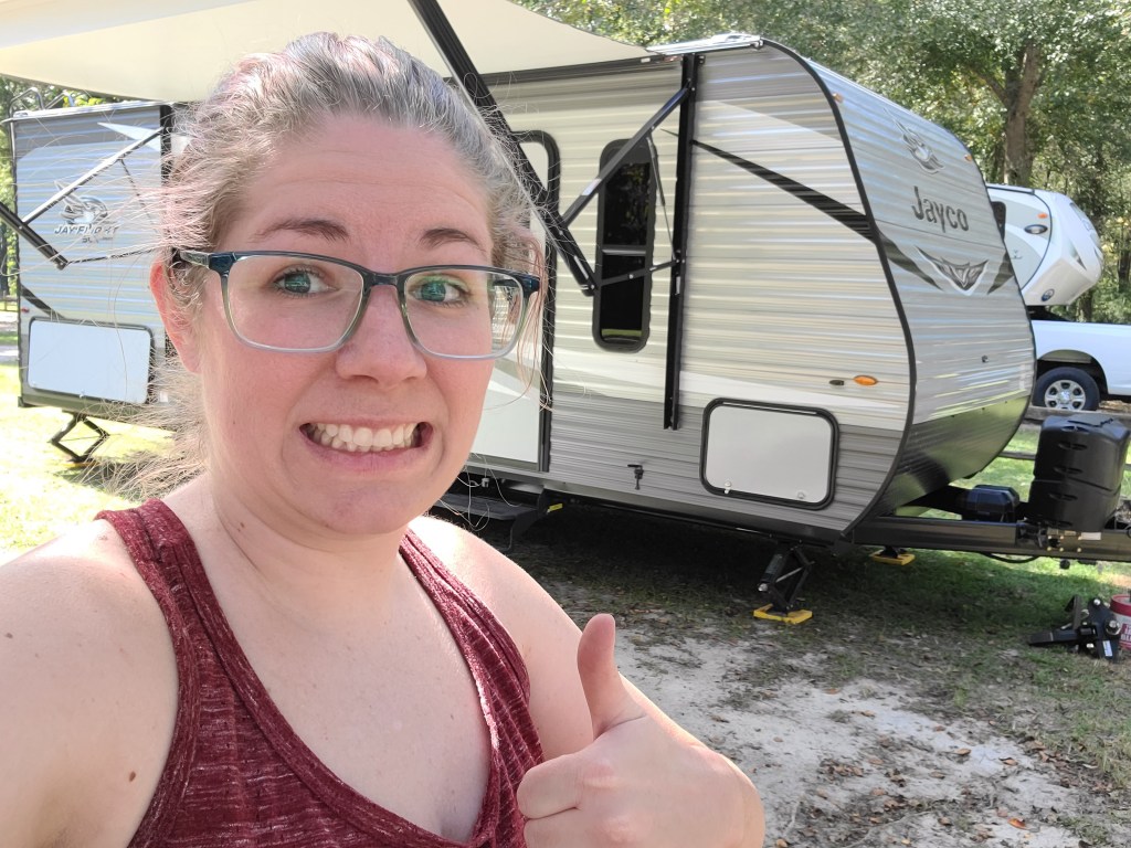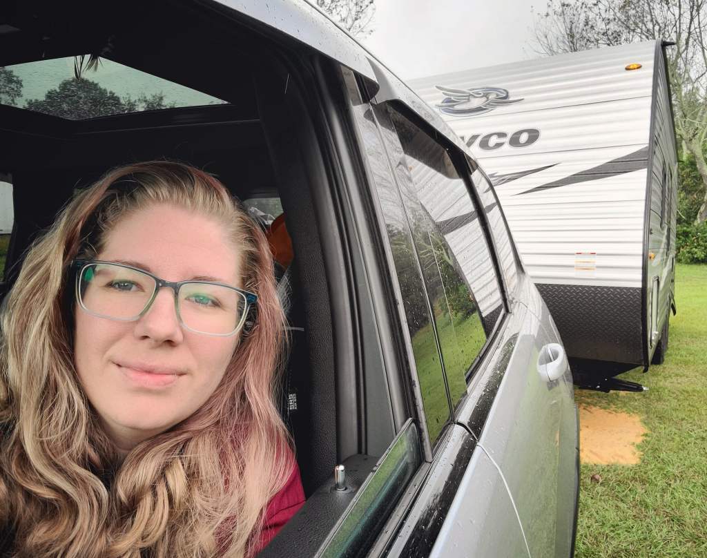 A few hours earlier, I had received a text from Steven saying he wanted me to haul the camper to the campground for the weekend while he finished up at work. I’d been saying I wanted to learn to pull the camper, so I could help him drive and be able to step-in in case of an emergency, but being thrown to the wolves wasn’t what I’d had in mind. That said, I’m not one to back down from a challenge, so I packed-up and headed to my in-law’s house to hook-up.