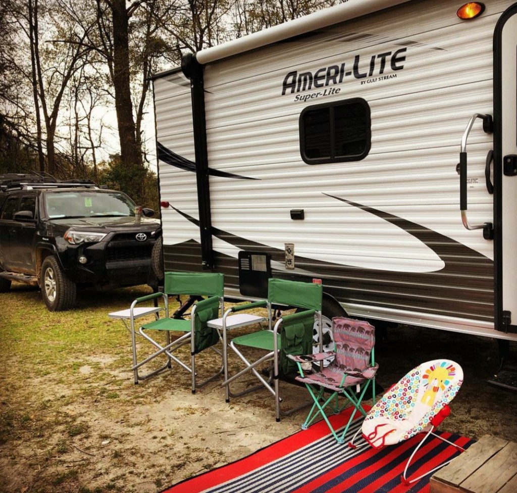 Before I knew it, the final checks were done, and I was sitting in the driver’s seat trying to remember to breath. Luckily, my father in-law was sitting in the passenger seat coaching me, and we only had an 18-mile trip on backroads to River Bottom Farms Family Campground in Swansea, South Carolina. River Bottom also was the site of our very first camping trip, so it only seemed fitting that it be the destination for another first: my first time towing.