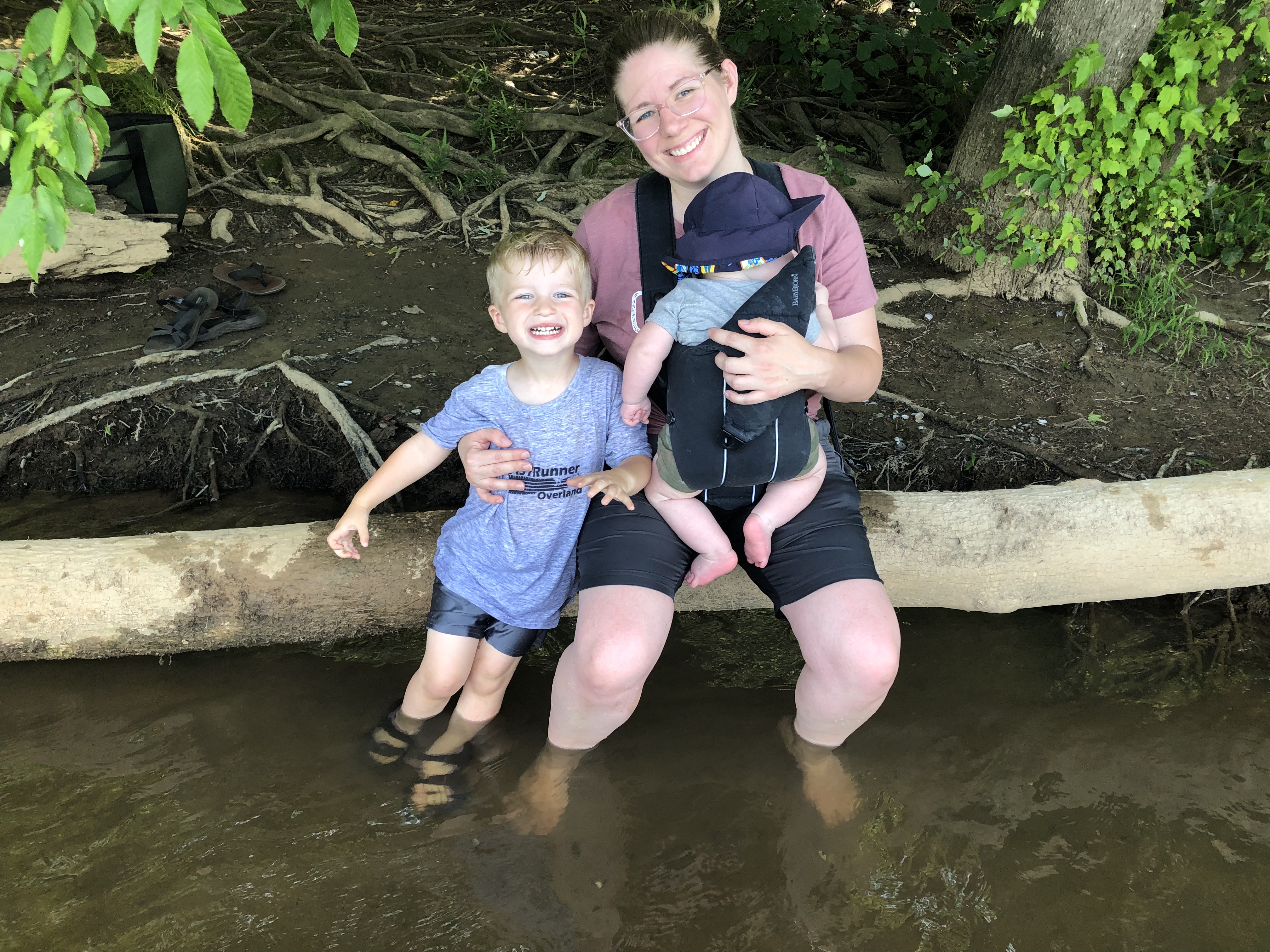 Once again the toddler’s “feet hurt,” so we trekked down the trail with Everett on Steven’s shoulders and the baby strapped to my chest.