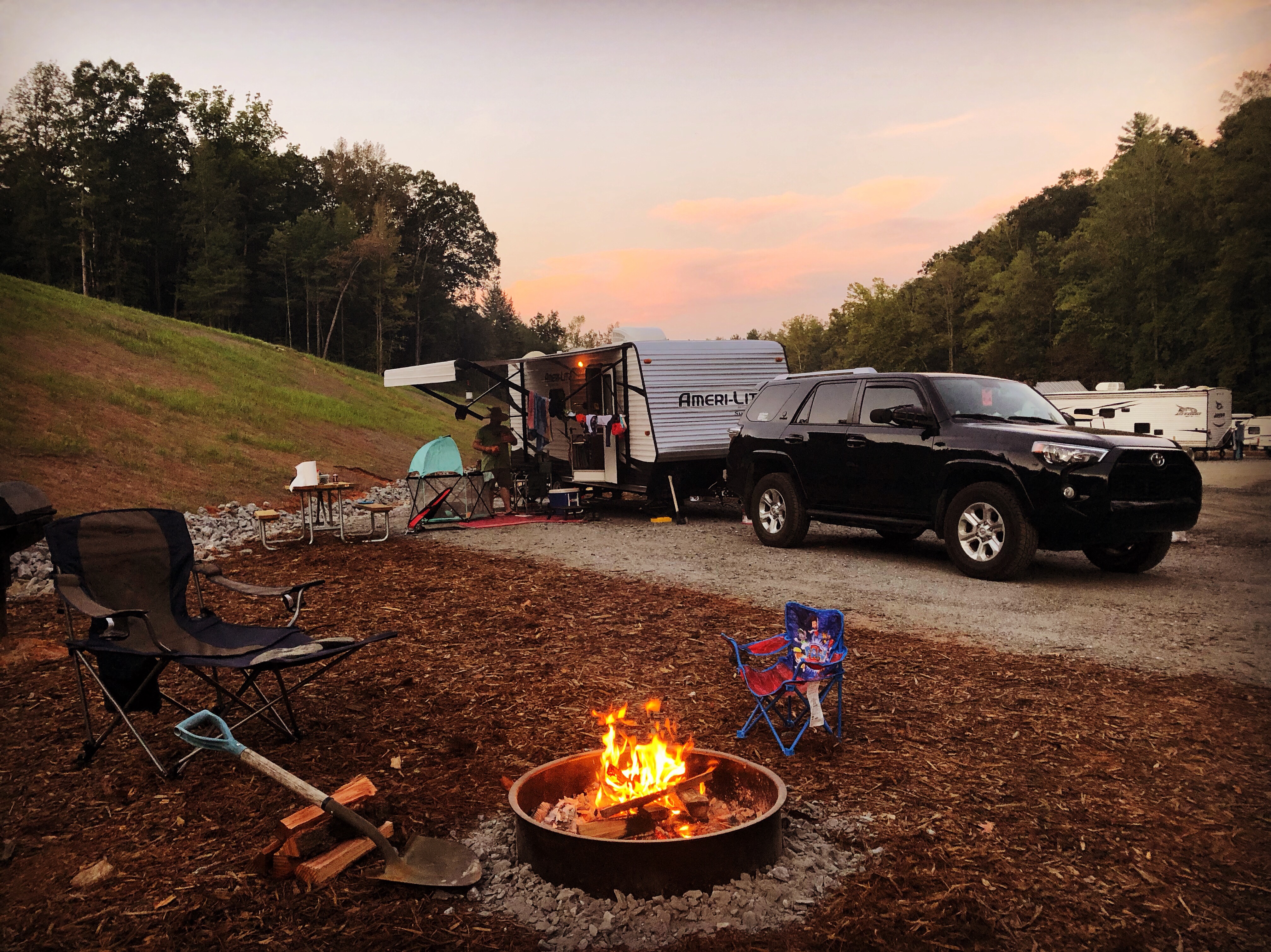 I booked our trip to Mountain Stream RV Park almost a year ago, so we were excited to finally get a chance to visit the campground in person. On Friday morning we packed what seemed like all of our worldly possessions into the Jeep, hooked-up the camper, and headed up I-26. From the Columbia area it was only about a 3-hour drive to the campground. The drive was pretty easy, except for the last 5 miles on Highway 80, which were very windy and had areas were rock faces were very close to the road.