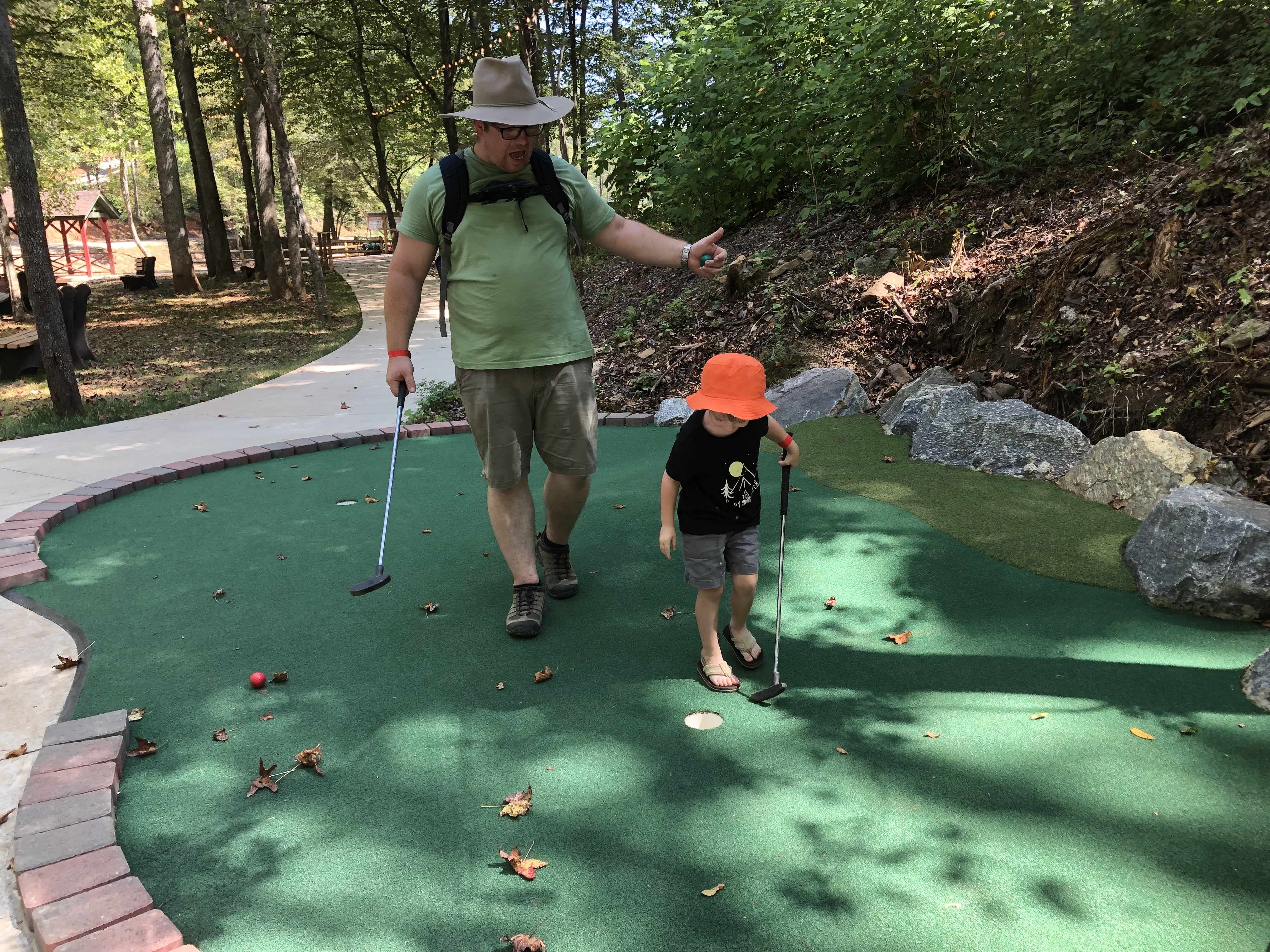 Saturday included another trip to the waterpark and pool, some gem mining, a round of putt-putt, a walk to the campground pond and more. We also enjoyed that the campground had cable, but were a bit disappointed that the Wi-Fi didn’t quite reach our site (though it did work well up at the store area). All of the amenities definitely made the higher rates worth it!